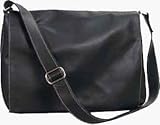 I just received this messenger bag and I am VERY IMPRESSED!!! The leather is soft and the white stitching gives a nice contrast against the black leather. Very roomy outside zipper pocket with a couple of pockets inside for cell phone, pda, pens, whatever! The inside is very roomy as well. I am using mine for a purse/tote for everyday use. It is definately roomy enough for someone with books, folders, magazines, etc. It has a hidden magnetic flap closure which is sort of a nice touch. This bag is casual enough for everyday use, yet still classy enough for the boardroom, unlike alot of bags out there made with nylon, clips, and straps, which is not a bad thing, but I prefer a more sophisticated look. I HIGHLY recommend this bag!!